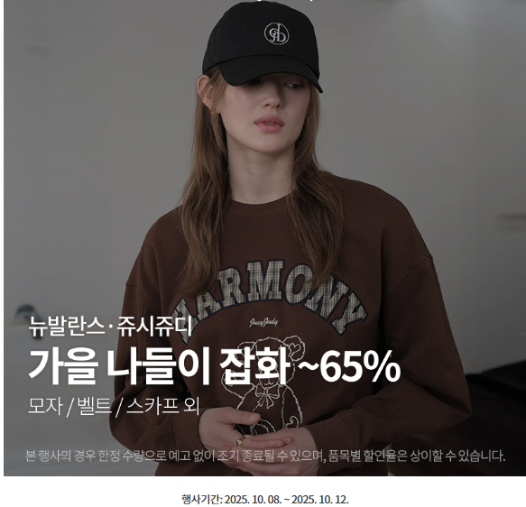 📌가을 패션 필수템! 뉴발란스·쥬시쥬디 잡화 최대 65% 할인 (10/8~10/12 단 5일간)