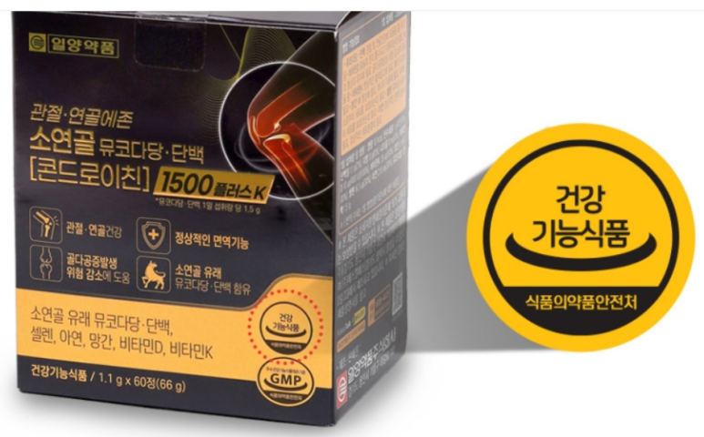 일양약품 관절 연골에존 소연골 뮤코다당 단백 콘드로이친 1500 플러스 K 120정 복용으로 무릎 통증 싹! 관절 건강 지키세요